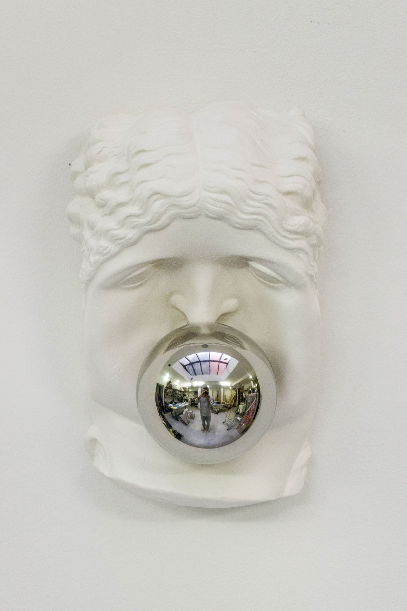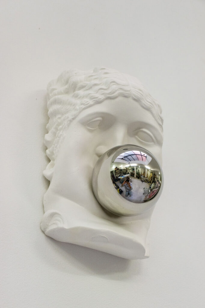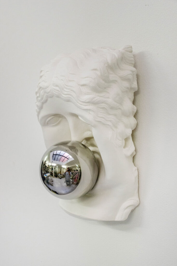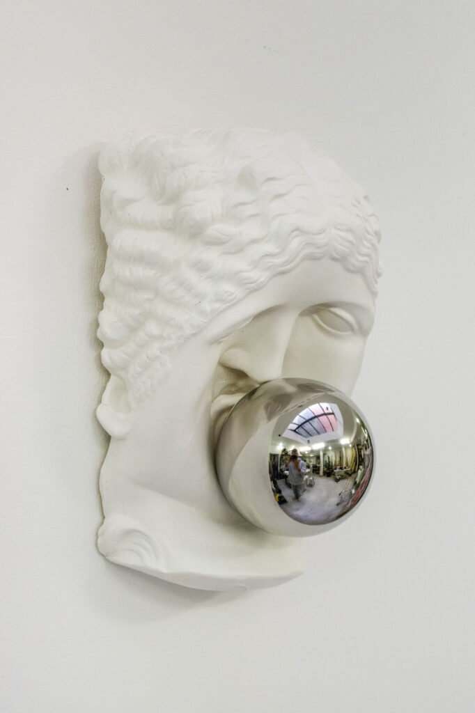 < > Gravity V2025Plaster, mirror-polished stainless steel30 x 20 x 13 cm11.8″ × 7.9″ × 5.1″ Courtesy Casado Santapau gallery and the artist. © ADAGP, Paris, 2025 < >